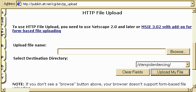 Screenshot of AT&T Upload page at their Personal Web Pages Publishing Server