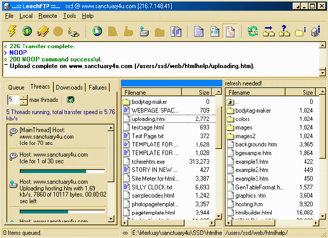This is a picture of LeechFTP uploading several files at once. I should have moved the scrollbar for the Threads running section so you could see a couple more.