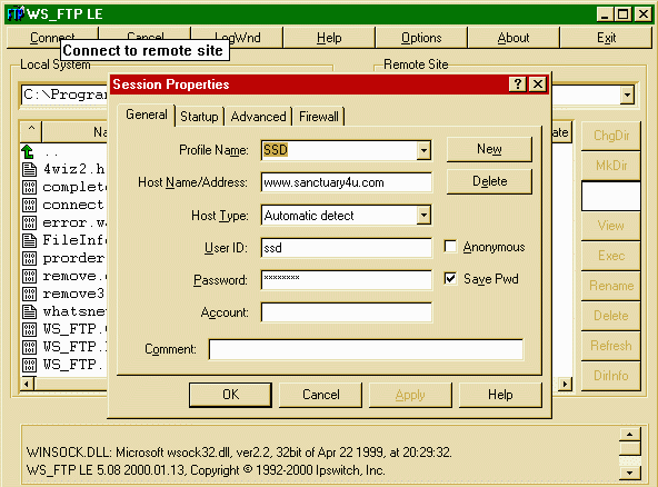 Using FTP to transfer your files is really quite easy, and much faster than using the "Upload" function/tool provided by your Web site host. I used my host's Upload for almost a year before I tried FTP. I was really sorry I waited so long, because it truly is easier.Screenshot #1 of WS_FTP LE